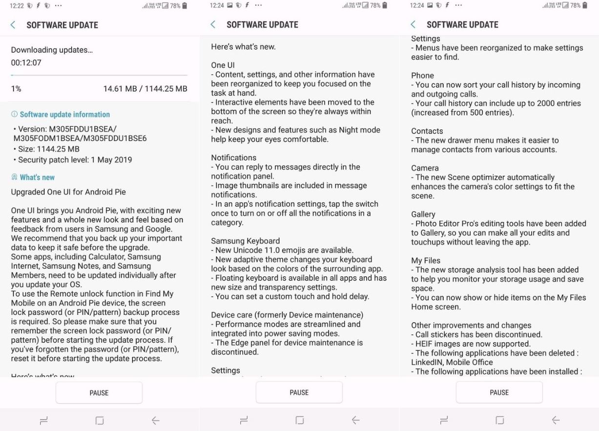 The software version of this update is M305FDDU1BSEA, and it has 1144MB size.